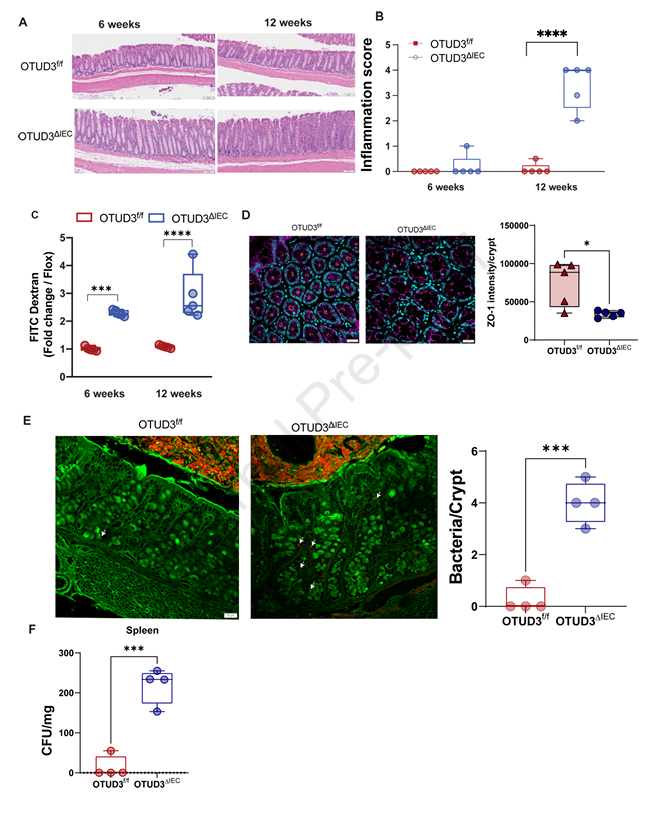 图4 只在肠道上皮细胞里敲除OTUD3也会导致自发性结肠炎