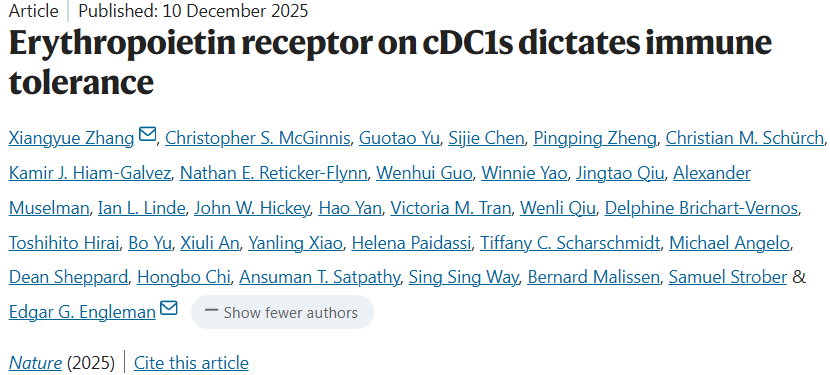Xiangyue Zhang et al, Erythropoietin receptor on cDC1s dictates immune tolerance, Nature (2025). DOI: 10.1038/s41586-025-09824-z.