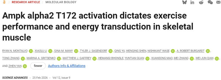 Ryan N. Montalvo et al, Ampk alpha2 T172 Activation Dictates Exercise Performance and Energy Transduction in Skeletal Muscle, Science Advances (2026). DOI: 10.1126/sciadv.aeb3338.