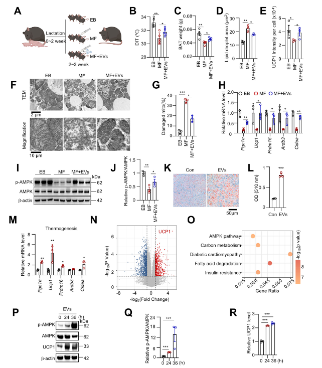 图4. 母乳来源的外泌体促进AMPK激活和棕色脂肪组织产热
