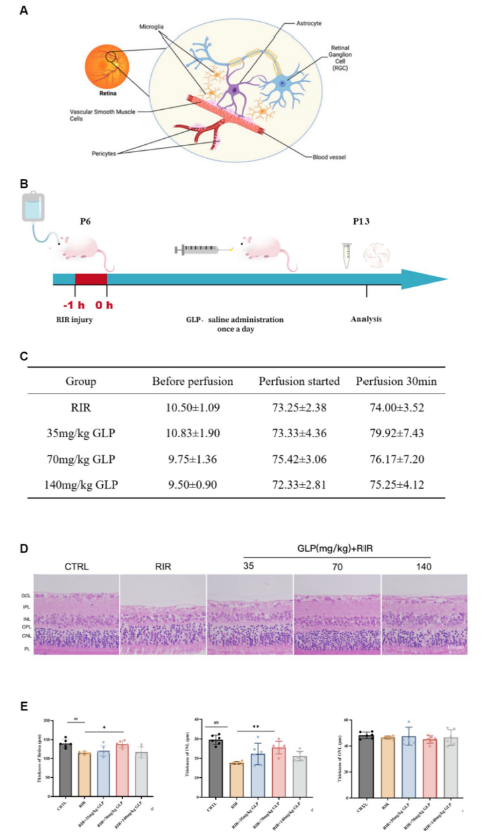 图1 灵芝多糖可减轻视网膜缺血再灌注诱导的视网膜病理损伤