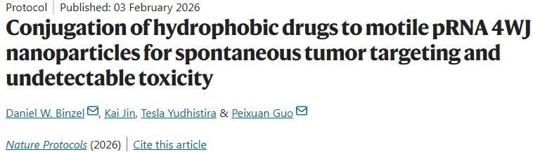 Daniel W. Binzel et al, Conjugation of hydrophobic drugs to motile pRNA 4WJ nanoparticles for spontaneous tumor targeting and undetectable toxicity, Nature Protocols (2026). DOI: 10.1038/s41596-025-01306-w.