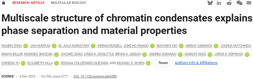 Huabin Zhou et al, Multiscale structure of chromatin condensates explains phase separation and material properties, Science (2025). DOI: 10.1126/science.adv6588.