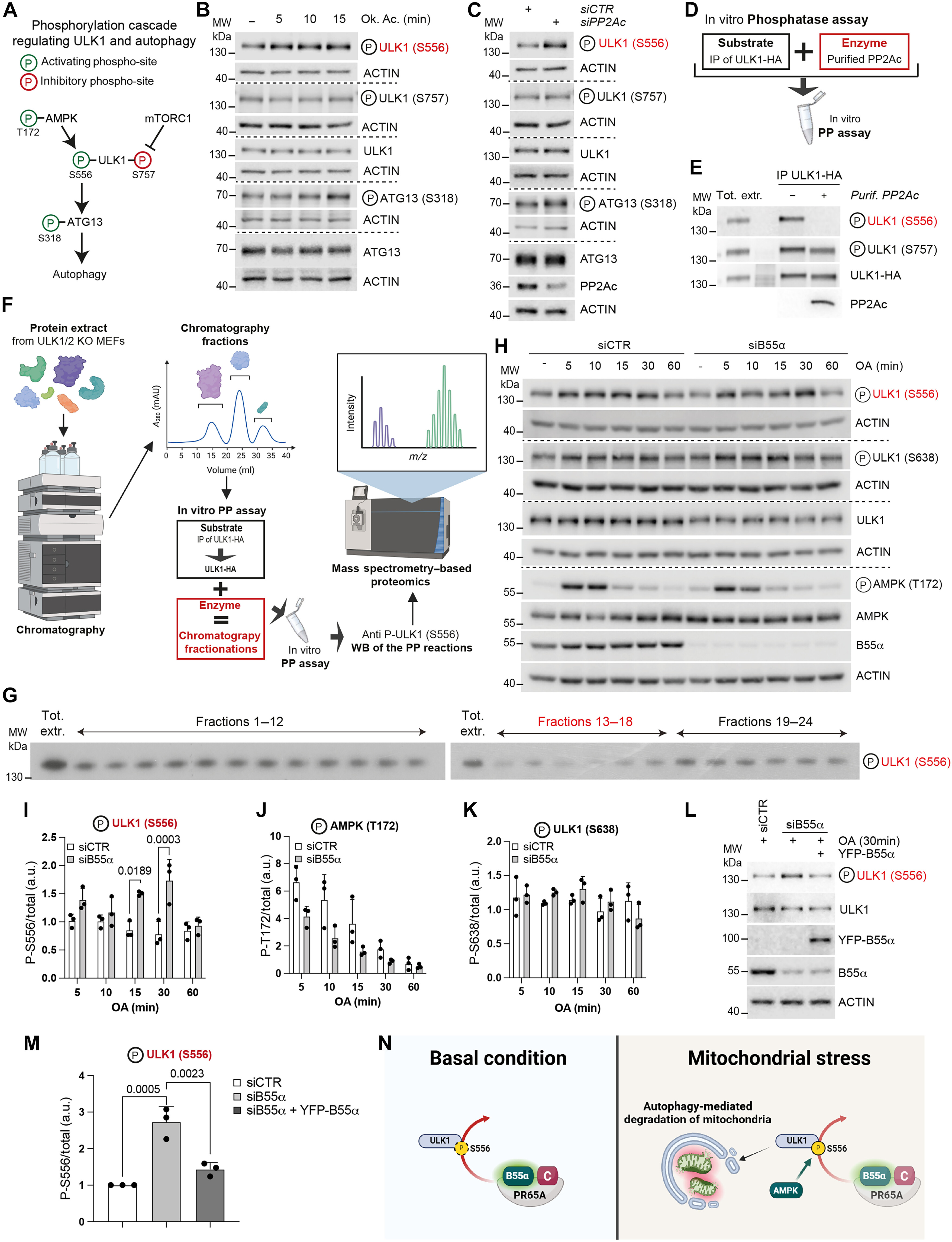 PP2A-B55α能在丝氨酸556位点对ULK1进行去磷酸化修饰