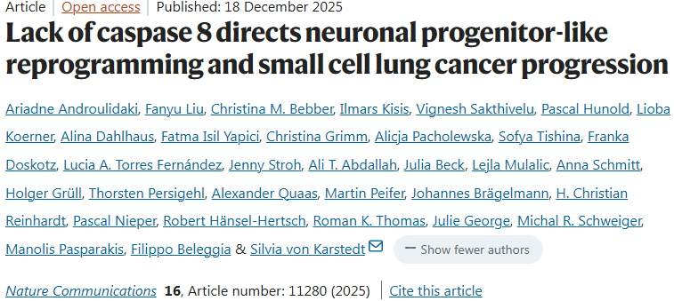 Ariadne Androulidaki et al, Lack of caspase 8 directs neuronal progenitor-like reprogramming and small cell lung cancer progression, Nature Communications (2025). DOI: 10.1038/s41467-025-67142-4.