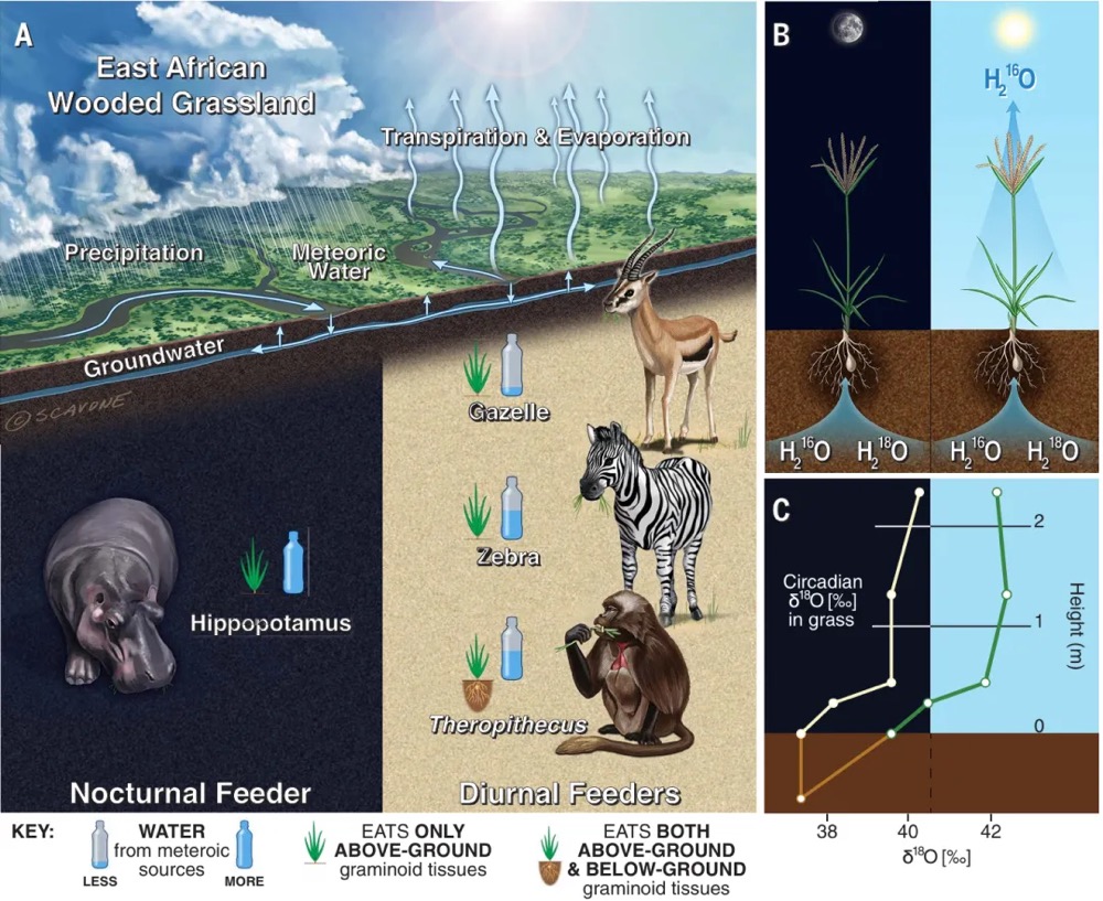 该研究报告了古人类化石的碳和氧同位素比值,并将数据整合到人类饮食进化的观点中,发现食草动物行为的变化比牙齿形态的相应变化早了约70万年。