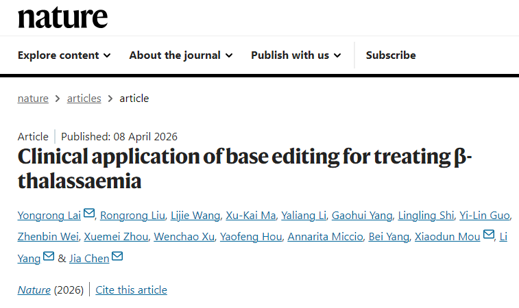 Nature:基因“小手术”带来大转机!五名地中海贫血患者告别输血依赖