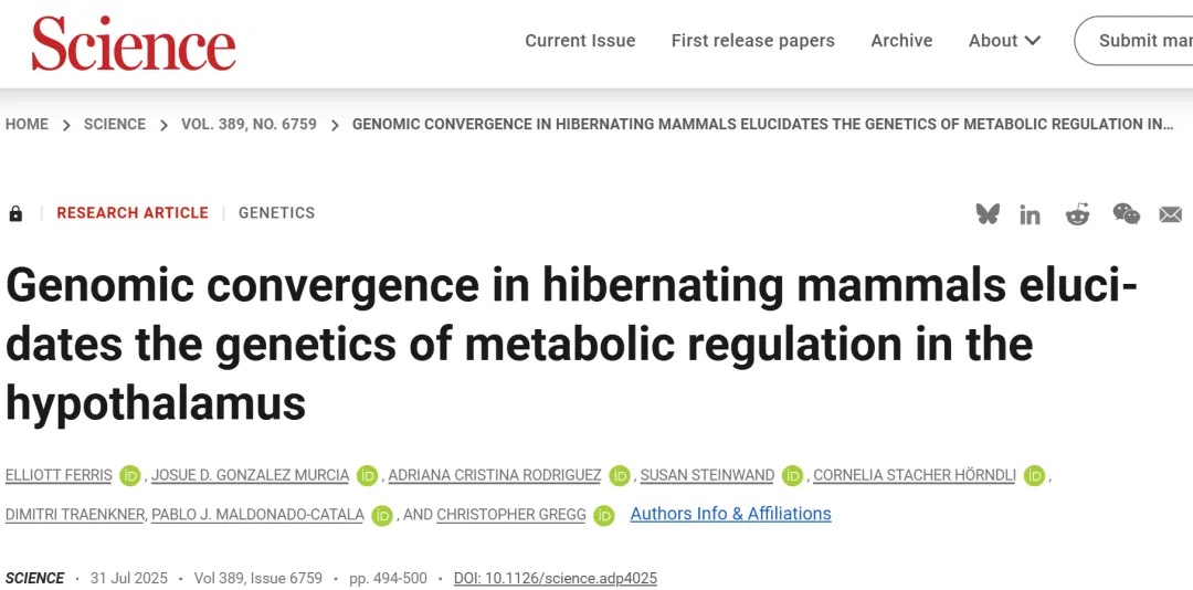 人类也拥有冬眠“超能力”?《Science》背靠背揭开冬眠秘密,或有助于多种疾病治疗