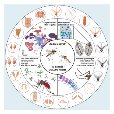 该图谱已经揭示了埃及伊蚊遗传秘密的新见解,包括新型细胞类型、雄性和雌性蚊子之间的细微差异与意外相似性,以及雌蚊在吸血后大脑中发生的基因表达剧变。