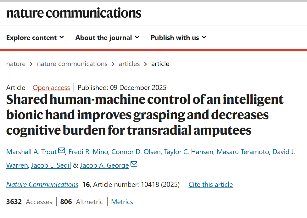 Nat Commun新突破:人机协同智能仿生手助力前臂截肢者精准抓握