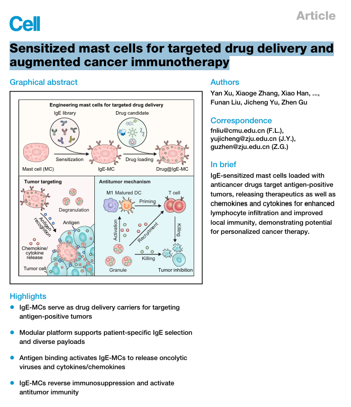癌症治疗怕“精准不足”、“免疫乏力”?Cell:IgE致敏肥大细胞双效出击,靶向递药+激活免疫,PDX模型验证临床潜力