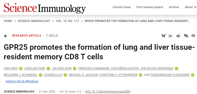 来自拉霍亚免疫学研究所等机构的科学家们通过研究发现了一个名为GPR25的受体分子,正是它主导了TRM细胞的“定居”过程,相关研究结果不仅解开了免疫记忆的形成之谜,更为下一代免疫疗法带来了全新可能。