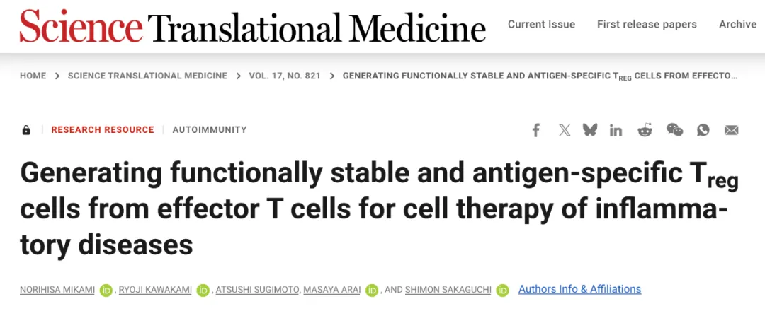 2025诺贝尔奖得主连发两篇论文:开发iTreg细胞疗法,治疗炎症性疾病和自身免疫疾病
