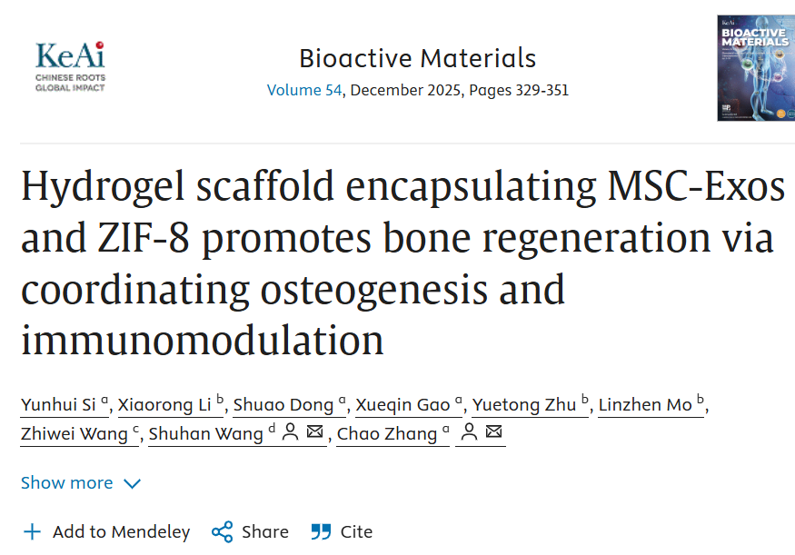 Bioact Mater 新突破:MSC-Exos+ZIF-8水凝胶破解骨缺损难题,成骨免疫双调控显实效