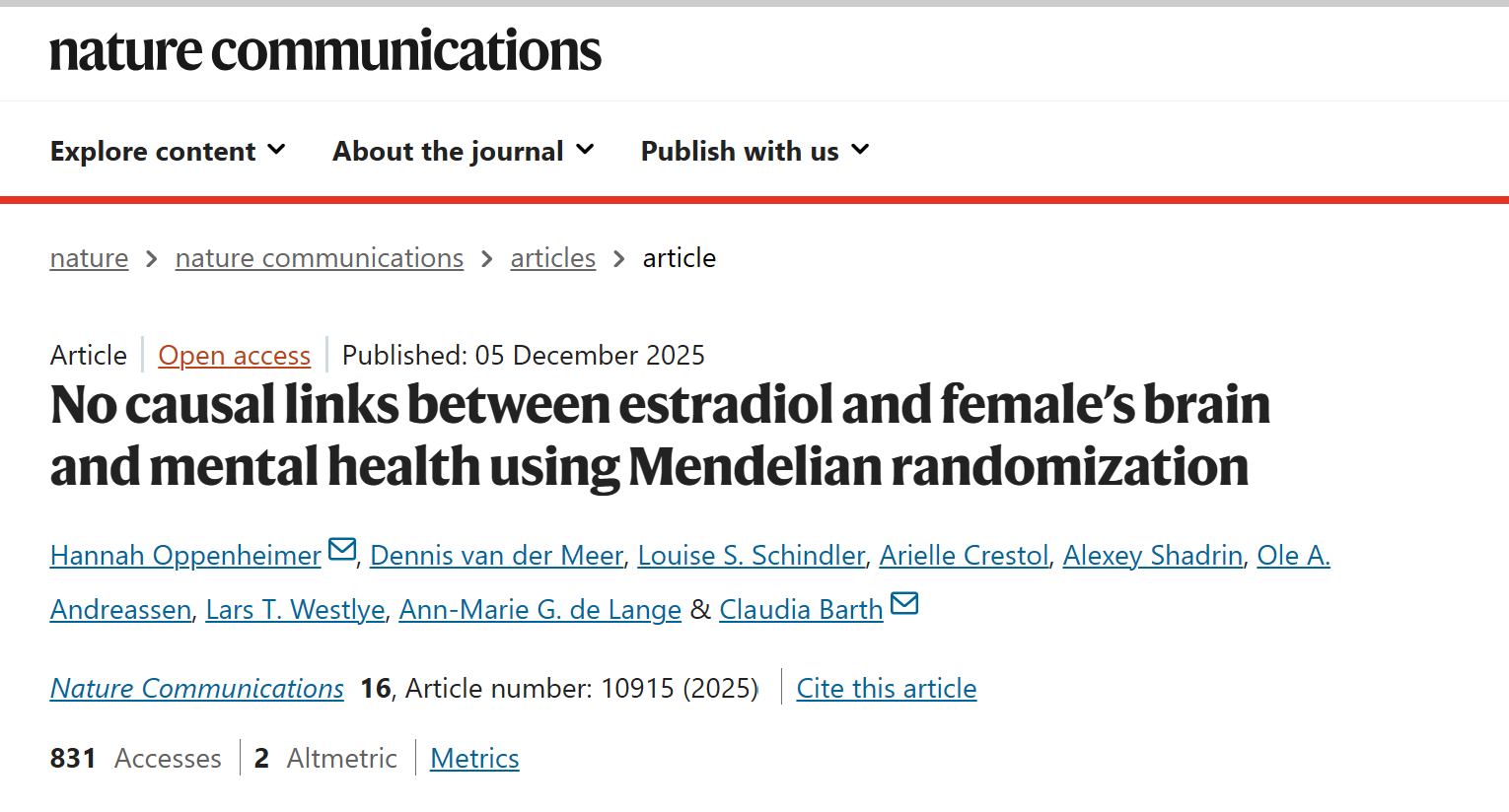 双样本孟德尔随机化研究证实,雌二醇水平及相关终生暴露因素与女性脑年龄差距、阿尔茨海默病和抑郁症无显著因果关联,激素波动为核心影响因素。