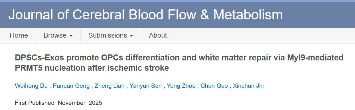 J Cereb Blood Flow Metab:牙髓干细胞外泌体靠Myl9/PRMT5/ID2轴发力,为缺血性卒中白质修复带来新策略!