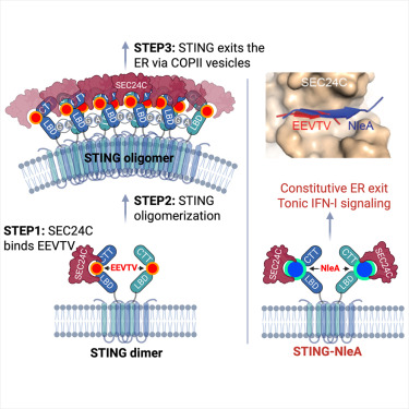 该研究确定 EEΦxΦ为被 SEC24 同源物 C(SEC24C)识别的内质网外运位点。阐明了 STING-ER 外运机制,并提出了调节 STING信号传导的策略。