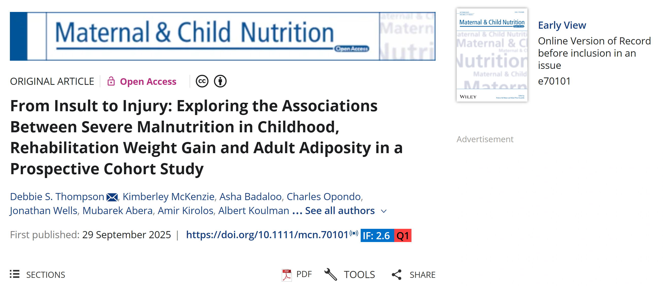 Matern Child Nutr:男性康复期快速增重,成年肥胖风险显著升高