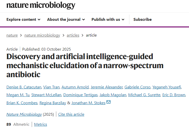 AI 仅用100秒破解抗生素谜题!Nat Microbiol:100 秒锁定药物靶点,新型窄谱抗生素精准狙击致病菌