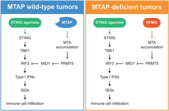 这项研究确定MTAP缺陷是细胞质核酸感知的一个关键抑制因子,也是人类肿瘤对STING激动剂耐药的一个决定因素。