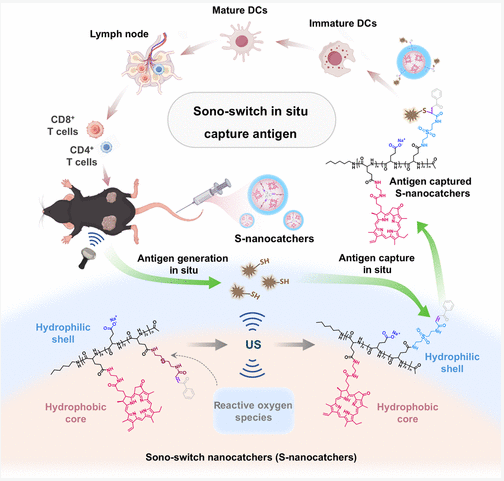 中国科学院长春应用化学研究所的科学家们成功开发出一种超声响应型原位抗原纳米捕获器,能够像安装了一个“智能开关”一样,在超声遥控下,在肿瘤内部实时捕获抗原,并就地合成疫苗。