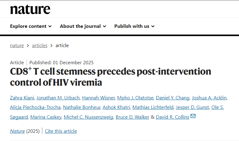 Nature:T细胞“特种兵”特质揭秘——为何有些人能长期控制HIV?
