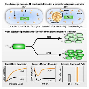 研究人员概述了一种技术,该技术可通过称为"液-液相分离"的过程在细胞内形成微小的液滴状区室,从而稳定合成基因电路。