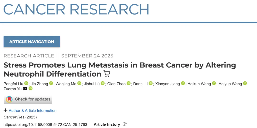 CR:压力促进乳腺癌肺转移!同济团队发现,慢性压力可催生特殊助癌中性粒细胞亚型,加速乳腺癌肺转移