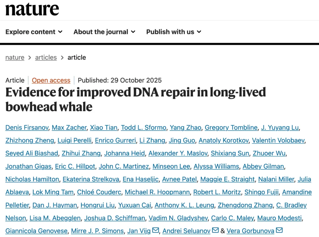 Nature重磅:鲸鱼长寿且不患癌症,关键在于这个DNA修复蛋白,或可帮助人类延长寿命