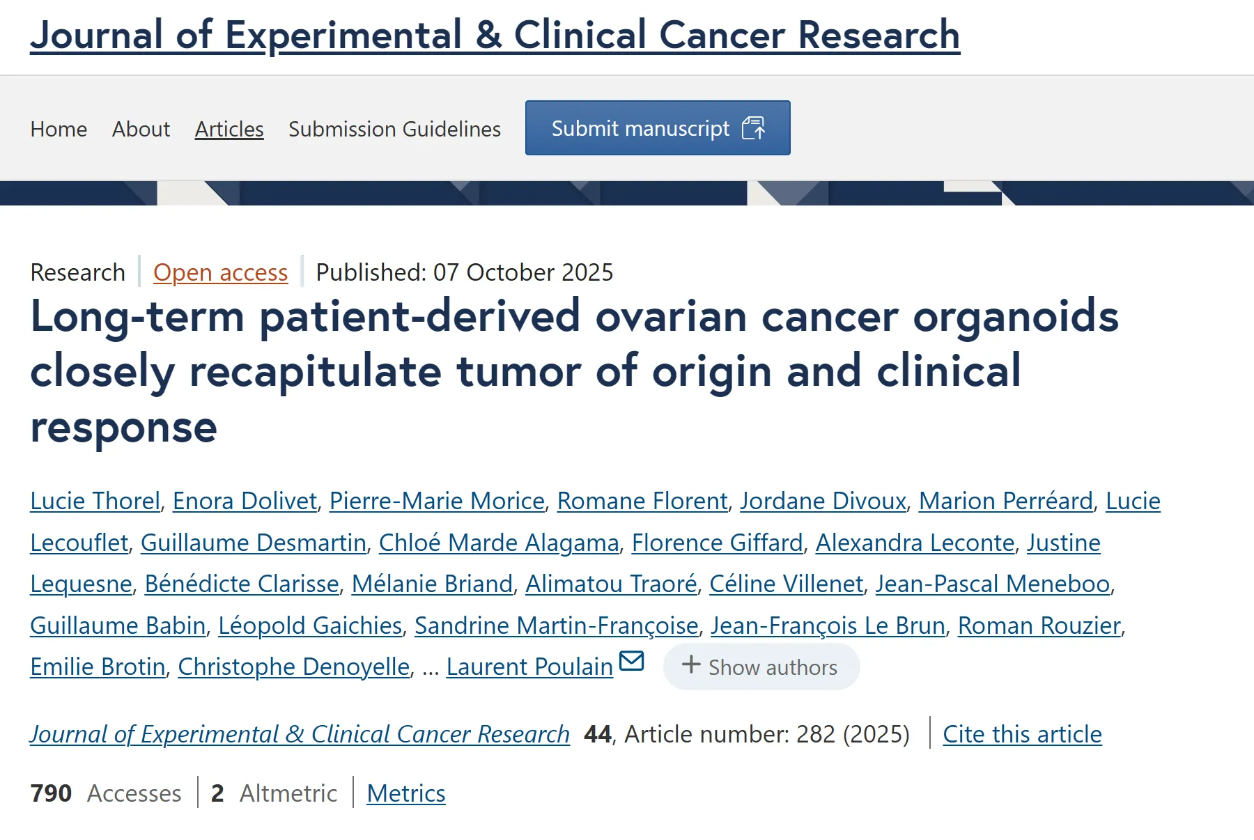 晚期卵巢癌选药不再“试错”!J Exp Clin Cancer Res:“微型肿瘤”类器官精准预测疗效
