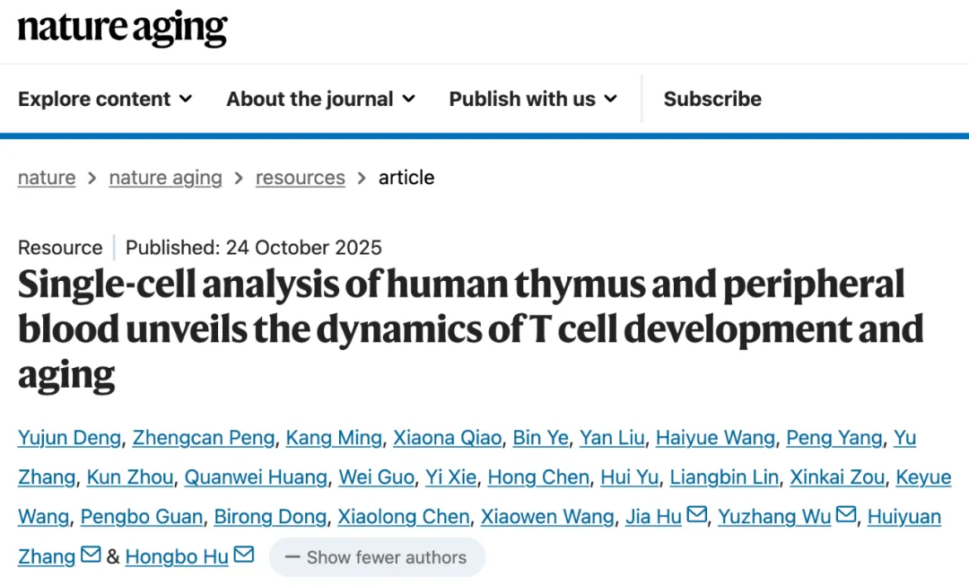 Nature Aging:胡洪波/张惠媛/吴玉章/胡佳团队绘制人类T细胞衰老图谱