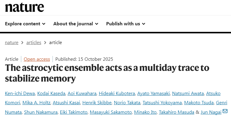 神经元只负责“干活”?Nature:星形胶质细胞才是记忆“保存总监”,双重认证锁死重要记忆